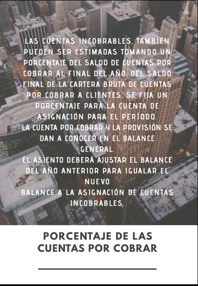 Bad accounts can also be estimated by taking a percentage of the balance of accounts receivable at the end of the year. From the final balance of accounts receivable from customers, a percentage is set for the allocation account for the period, the account receivable and the provision are disclosed in the balance sheet. The seat must adjust the balance of the previous year to match the new balance to the allocation of bad debts.